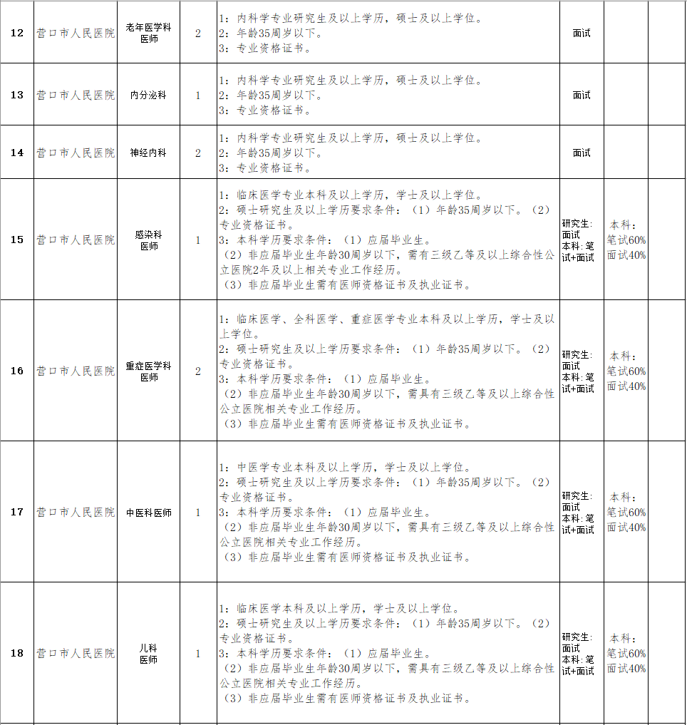 (四)根据辽卫传【2021】70号《转发国家卫生健康委办公厅等四部门关于贯彻落实住院医师规范化培训“两个同等对待”政策的通知》文件要求,对经住培合格的本科学历医师可报名招聘研究生专业的相应岗位,但需参加笔试。